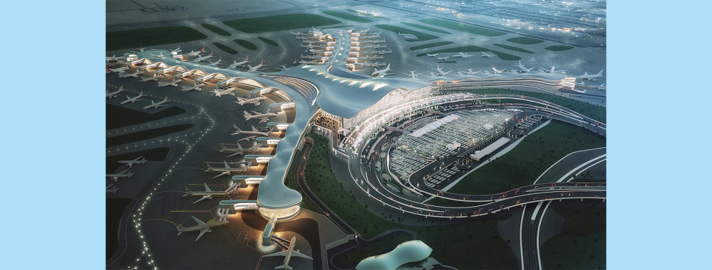 The Midfield Terminal Building will be the largest in the Emirate of Abu-Dhabi and will be visible from more than 1,5 km away. With a capacity of 30 million passengers per year, it will handle up to 8.500 passengers per hour.