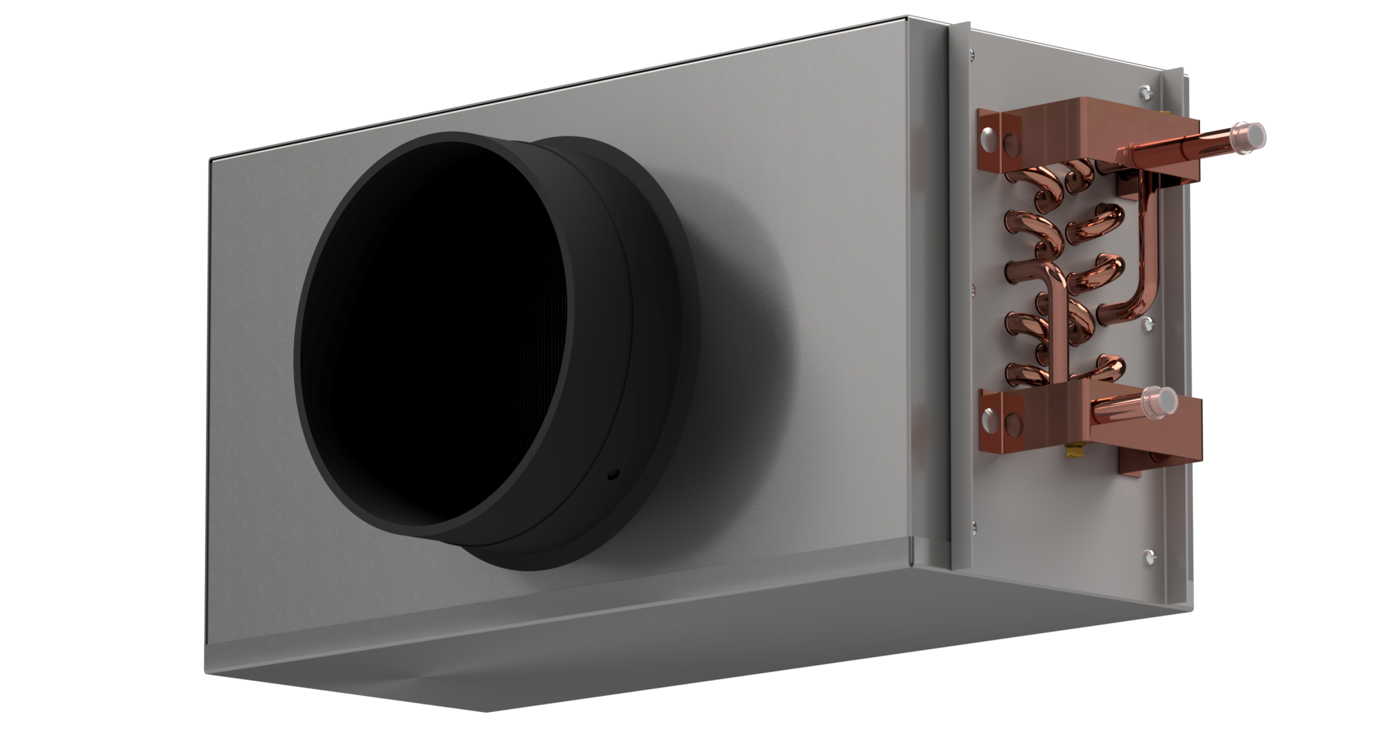 Warmwater kanaalverwarmer voor het verwarmen van voorbehandelde lucht. Leverbaar in ronde uitvoering geschikt voor inbouw. De kanaalverwarmer is leverbaar als 1-rij, 2-rij of 4-rij uitvoering.